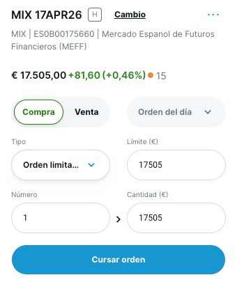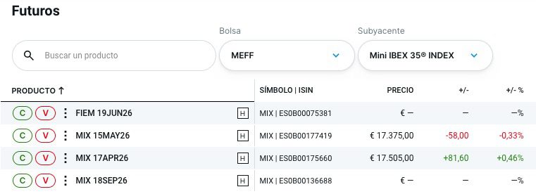 | Consejo rápido: Escoge el contrato con el vencimiento más cercano, ya que será el que goce de mayor liquidez. |